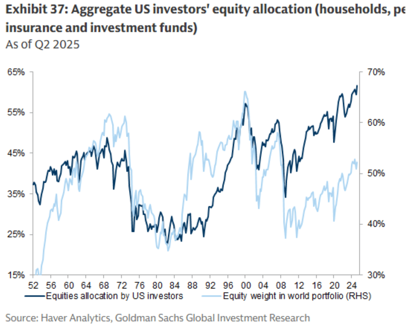Autrement dit, les investisseurs américains sont aujourd’hui très fortement exposés aux actions, à l’échelle agrégée.